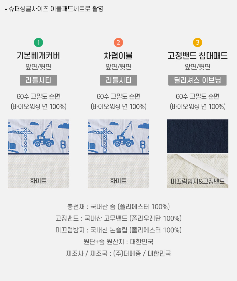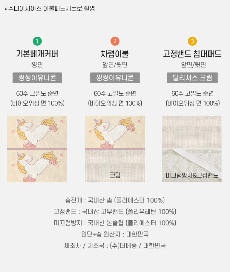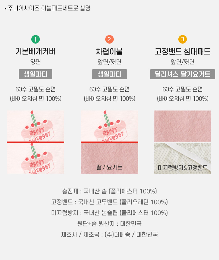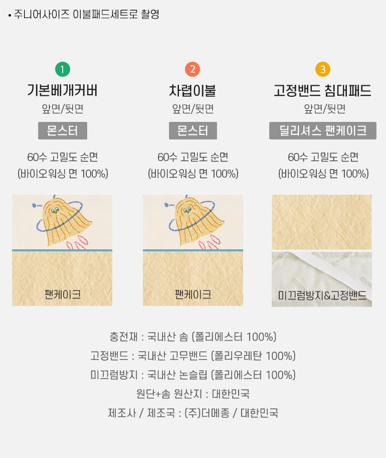 국내생산 타이틀-공통 베개 패드 구성및사이즈-b2b 출시컬러-공통