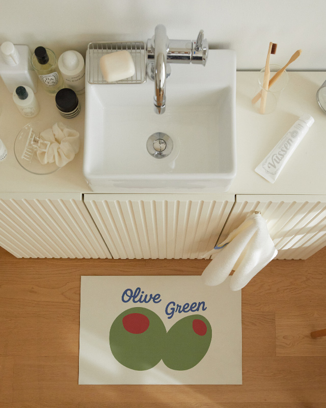 [BRANDUID] 빨아쓰는 1초 흡수 소프트 규조토 욕실 주방 발매트-올리브(40X60)[BRANDNAME] 18,000[PRICE] 리빙 발매트 [NAME]