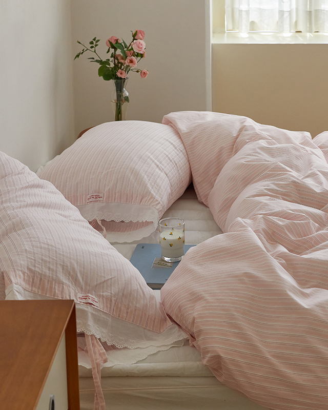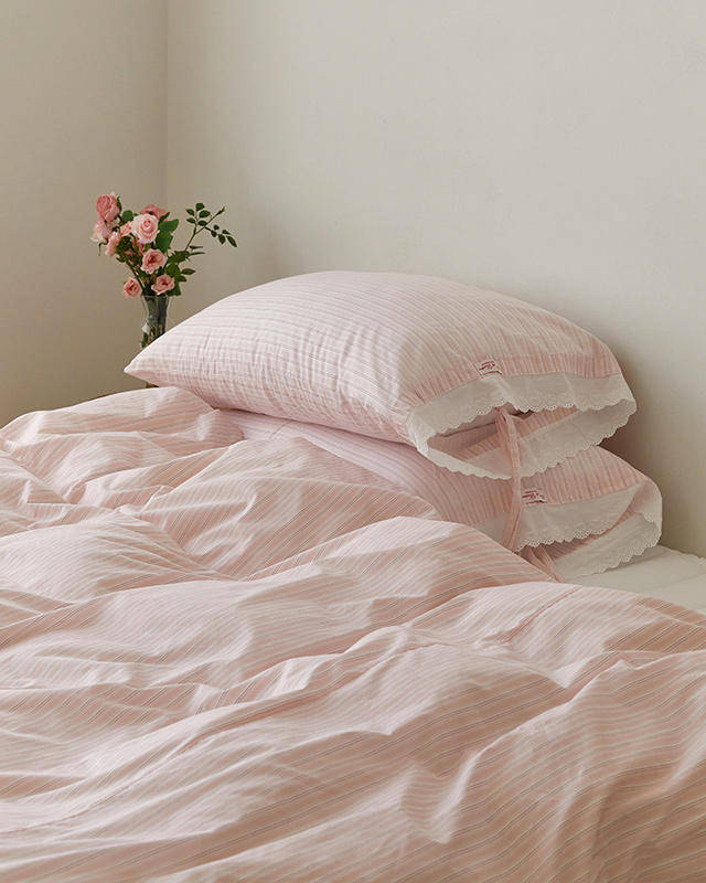 [주문제작] [순면100%] 리틀슬리피 60수 아사 순면 레이스 이불커버-핑크원피스(SS/Q)