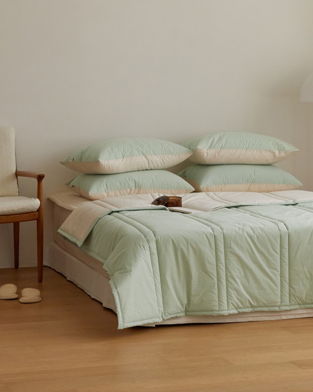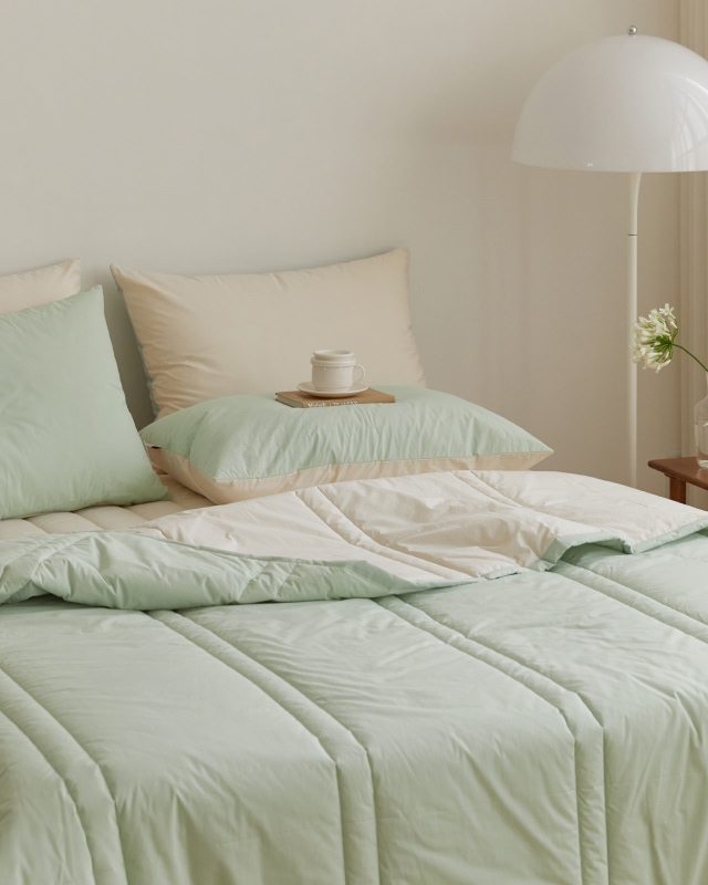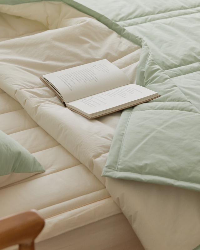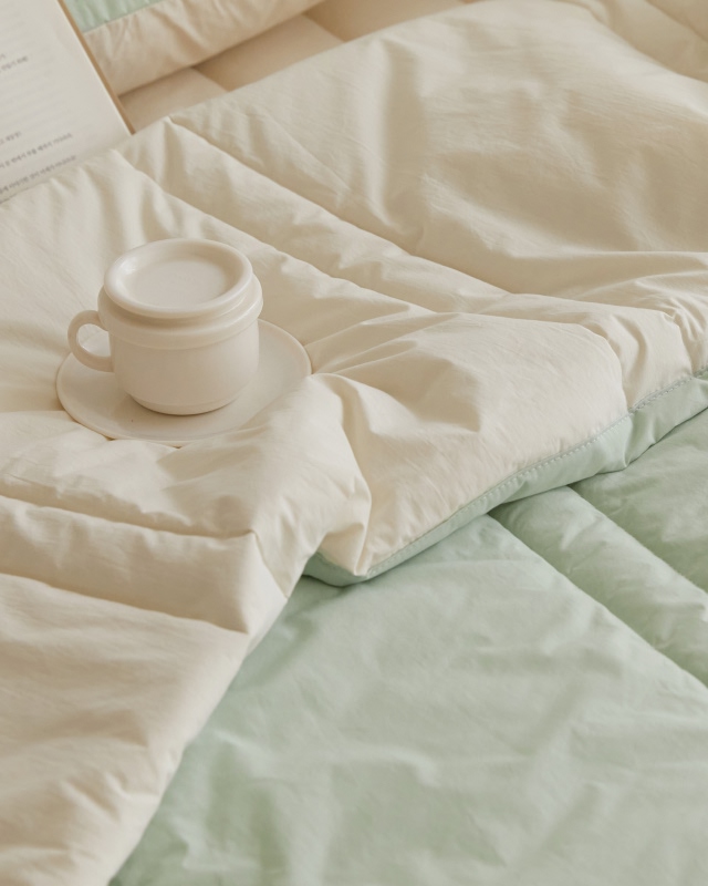 햇살에 말린듯 도즈 고밀도순면 간절기 차렵이불-민트크림(SS/Q/K)